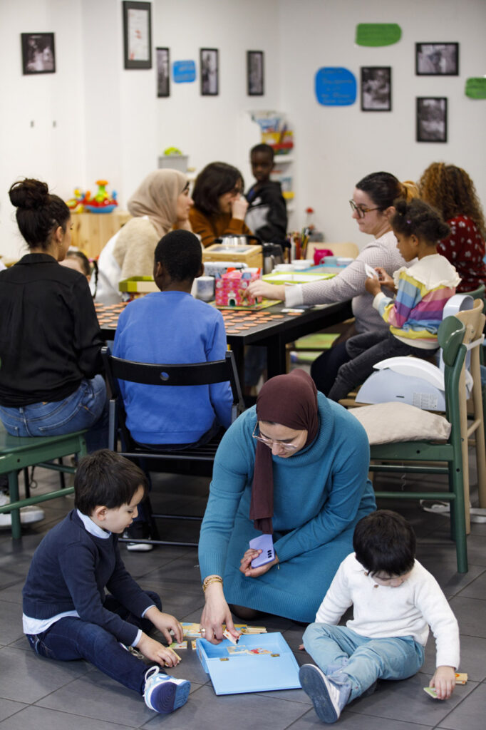 “La Maison des Familles fonctionne sur le principe de l’accueil libre. Nous sommes ouverts du lundi au vendredi, sur des plages horaires définies. Les parents peuvent venir sans inscription, gratuitement, pour cinq minutes, une heure ou toute la journée. C’est vraiment la porte d’entrée principale. Tout se fait avec les parents : on décide ensemble, on construit ensemble. Les temps plus spécifiques ou les projets se mettent en place à partir de ce que vivent les familles au quotidien.”