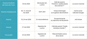 Ces temps d’échange conviviaux du mercredi matin s’adressent aux parents d’adolescents. Accompagnés par la référente famille, ces rendez-vous ne visent pas à donner des conseils mais à accompagner chacun dans sa réflexion, en s’appuyant sur les expériences partagées au sein du groupe. Ce mois-ci, la thématique porte sur la gestion des émotions. Un espace de parole gratuit, bienveillant et ressourçant. Entrée gratuite.