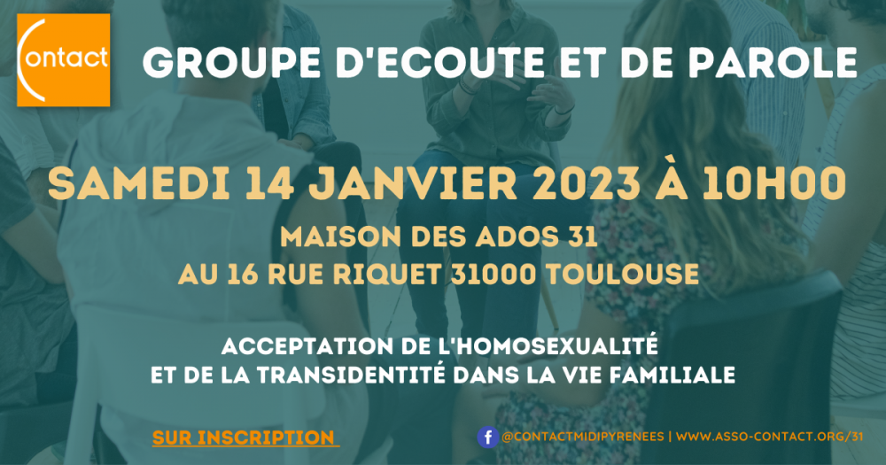 La Maison Départementale des Adolescents et l'association Contact organisent un groupe d'écoute et de parole sur la thématique de l’acceptation de l'homosexualité et de la transidentité dans la vie familiale.